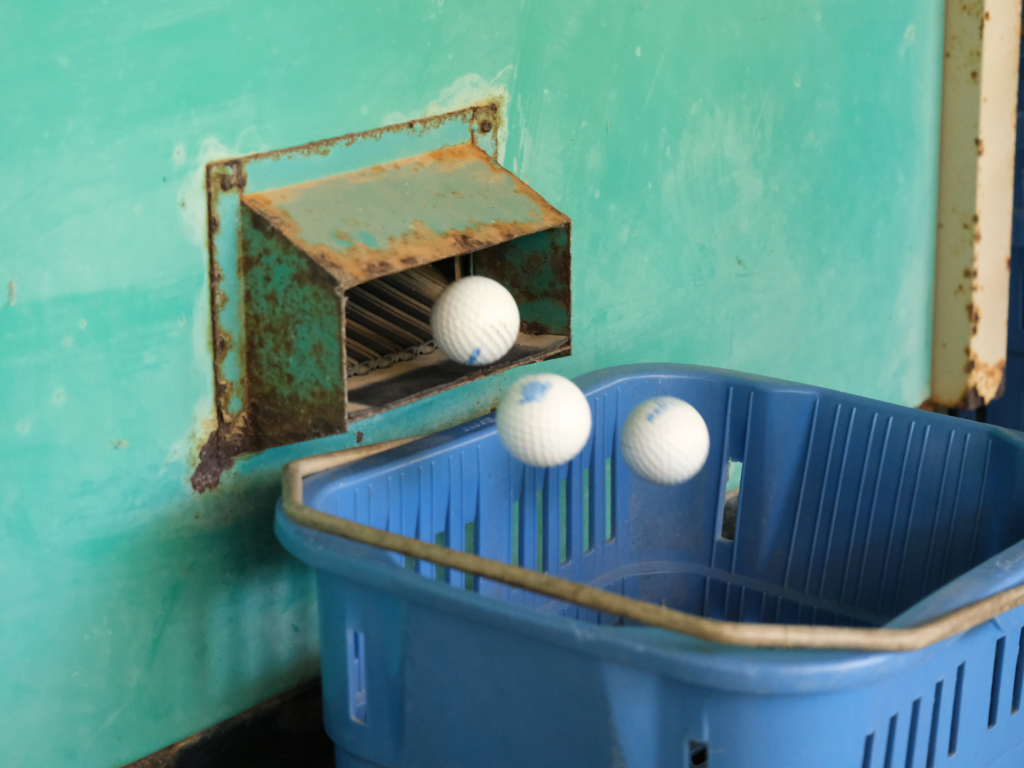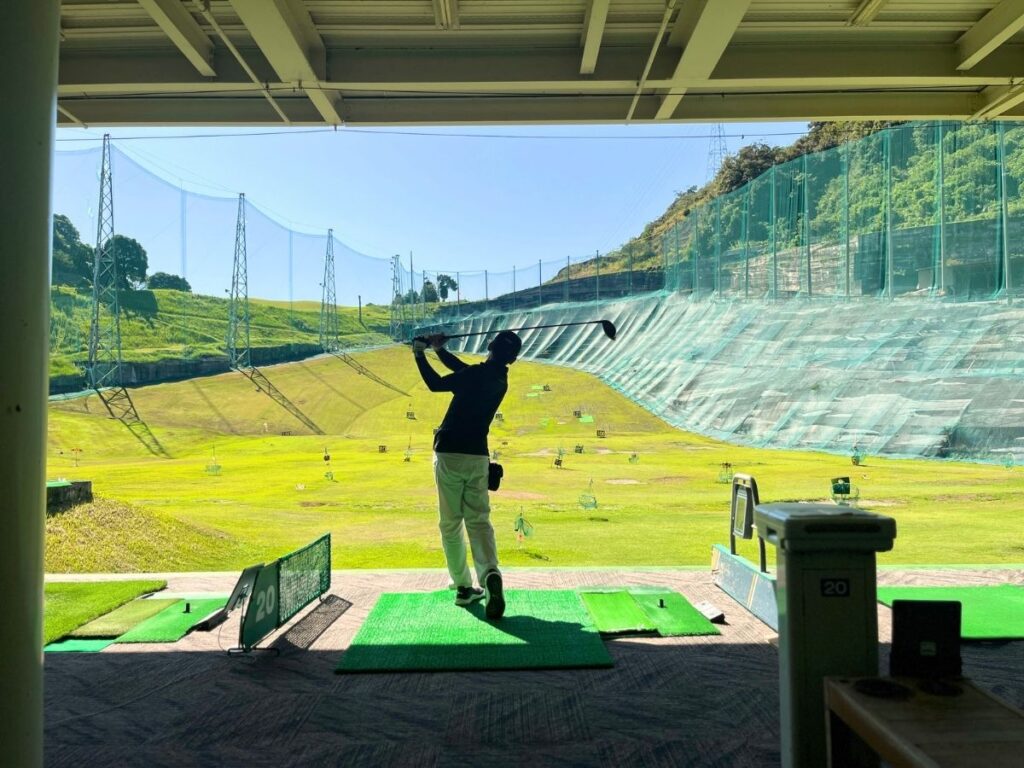 ラウンド当日の早朝に打ちっぱなしで練習ができます。