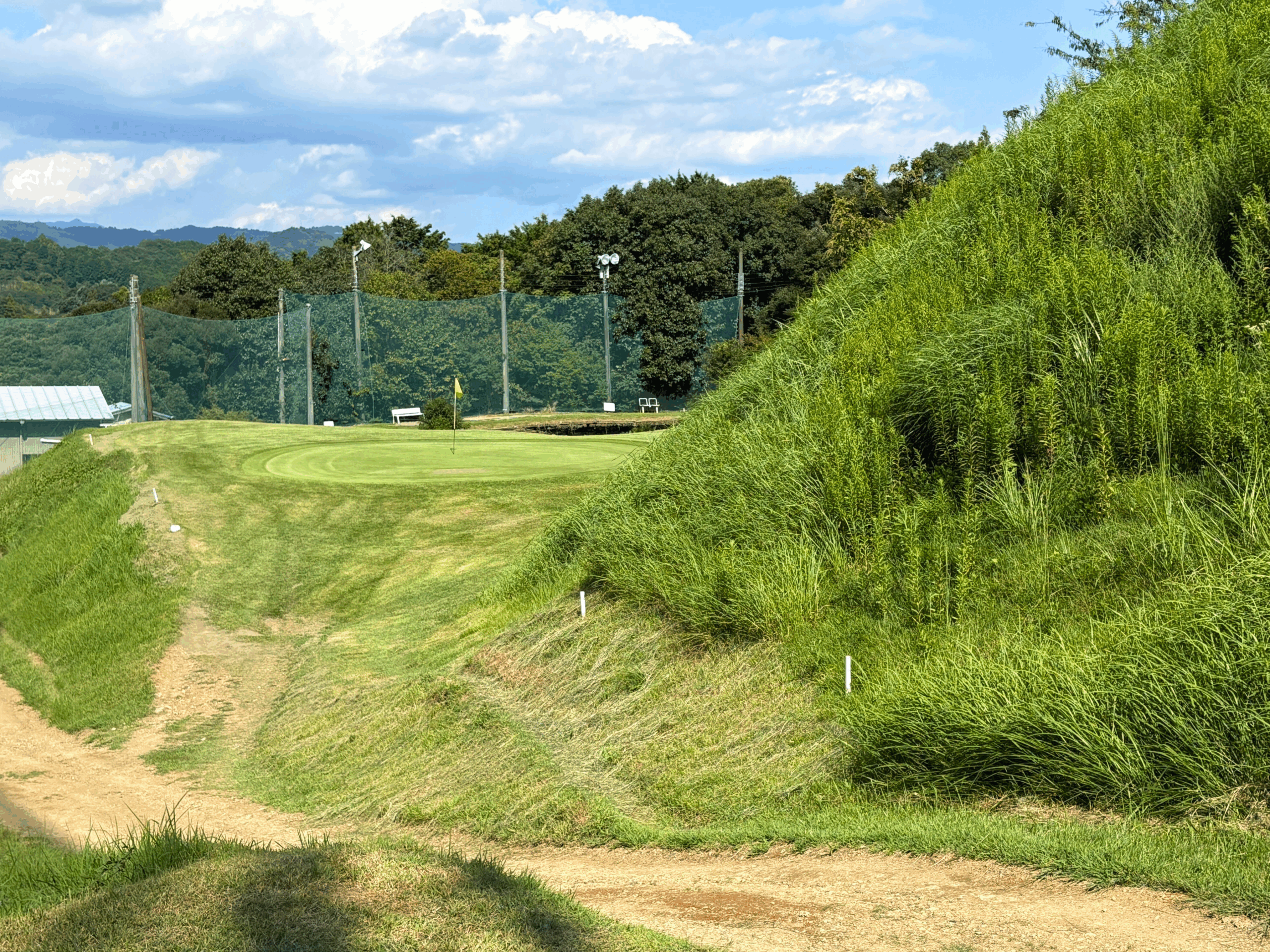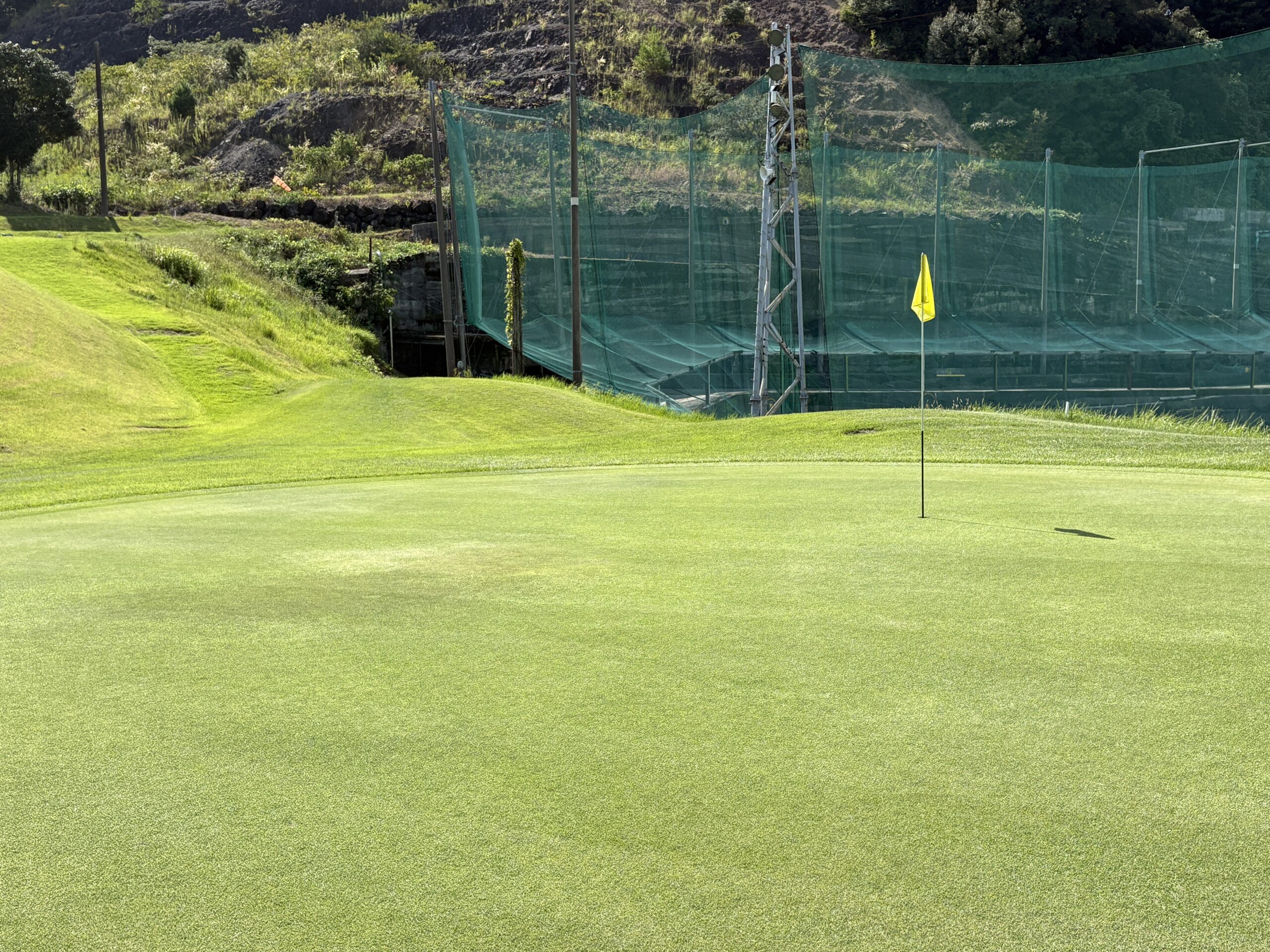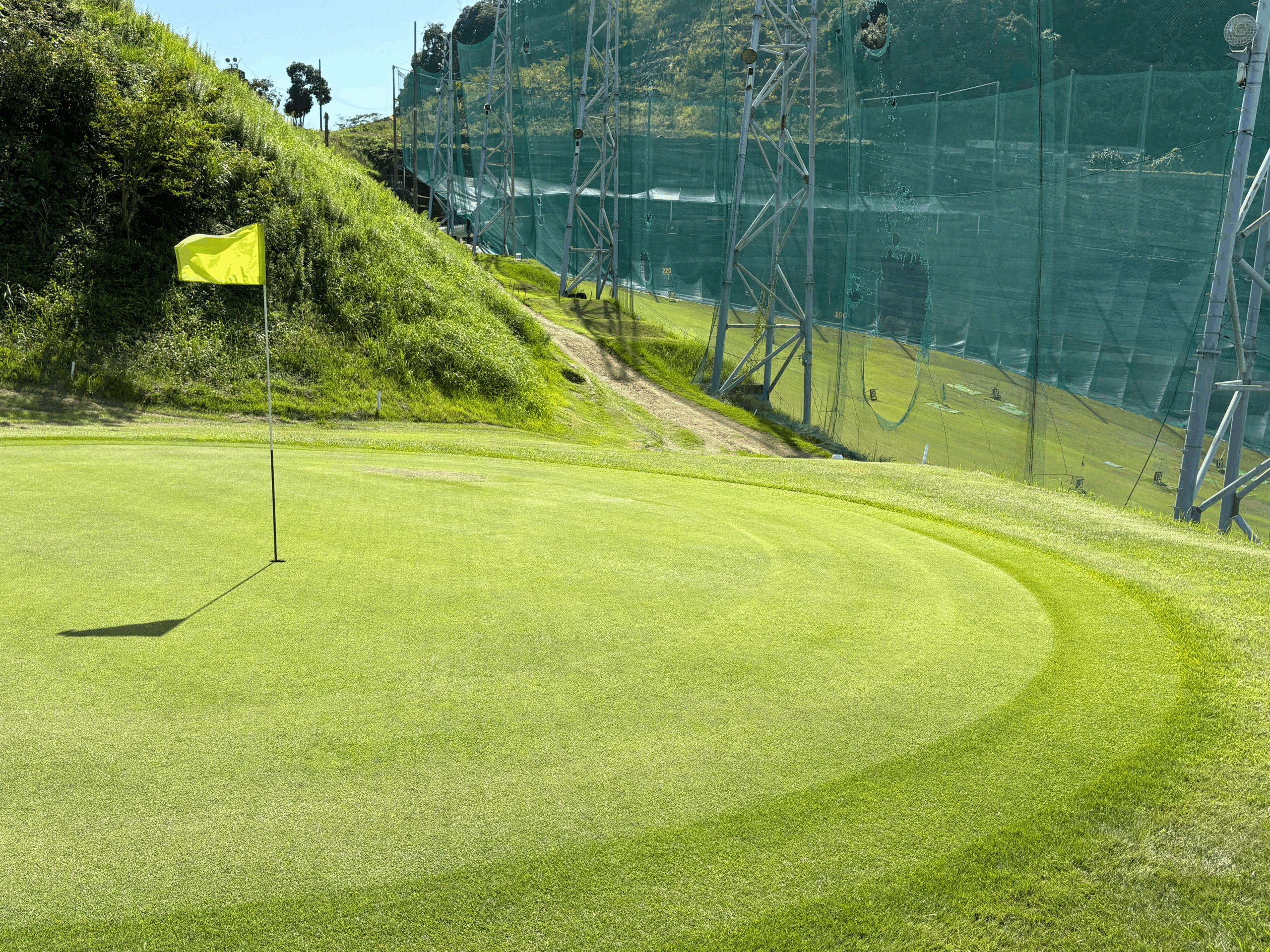 距離は短めの砲台グリーン。障害物もなく、クラブ選びに迷わず気持ちよくスイングでき、フォームの確認に最適なホール。余計な力を抜いて、素直に振り抜く心地よさを味わえる。